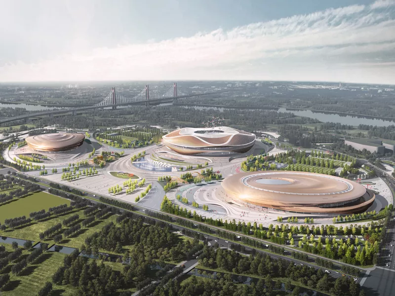 Grand-spacaj ŝtalaj strukturoj en sportaj stadioj estas speco de arkitektura formo, kiu uzas ŝtalon kiel la ĉefan konstruaĵon kaj, per sprita dezajno kaj preciza konstruado, atingas ekstreme grandan spacan interspacon. Utiligante la altan forton, bonan ductilecon kaj maleblecon de ŝtalo, ĝi povas ampleksi larĝajn areojn, kreante malferman kaj kolumn-liberan internan spacon por la stadiono, plenumante la altajn spacajn postulojn de grandskalaj eventoj kaj agadoj, samtempe prezentante grandiozan kaj imponan arkitekturan aspekton. Ĝi estas ŝlosila teknika rimedo en moderna sporta konstrua dezajno, kiu kombinas funkciecon kaj estetikon.