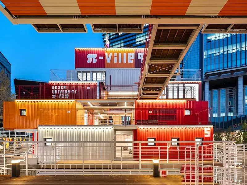 Tre personecigita personigo. Pluretaĝaj kontenaj domkonstruaĵoj povas plenumi malsamajn projektajn postulojn kaj prezenti unikan arkitekturan estetikon.