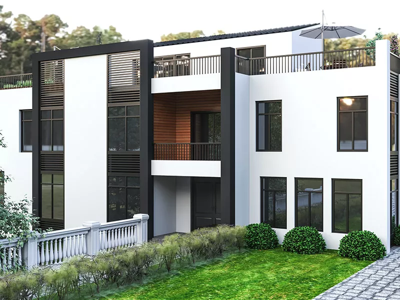 ● Energia Efikeco: La vilao-domo estas desegnita kun energiŝparaj funkcioj kiel izolitaj muroj kaj tegmentoj, energiefikaj fenestroj kaj integraj opcioj de suna panelo, reduktante energikonsumon kaj servaĵojn.