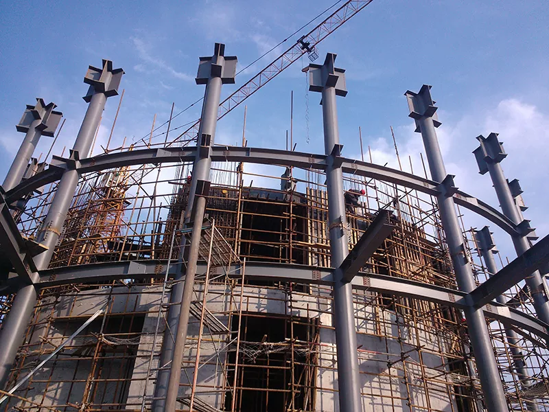 Prefabrikitaj ŝtalaj strukturoj Altaj konstruaĵoj estas nova speco de konstrua formo, kiu uzas fabrik-preparitajn normigitajn komponentojn kiel ŝtalaj traboj kaj ŝtalaj kolumnoj kiel la kerna ŝarĝa sistemo, kiuj estas kunmetitaj surloke tra alt-fortaj rigliloj aŭ velda teknologio. La malpezaj kaj alt-fortaj trajtoj de ŝtalo ebligas pli grandajn etendojn kaj flekseblajn spacajn aranĝojn, reduktante la pezajn murojn de tradiciaj betonaj strukturoj kaj plibonigante spacan uzadon. Samtempe ili konformas al la verdaj konstruaj normoj - la ŝtala reciklada indico superas 95%, kaj surloka konstrua polvo reduktiĝas je 70%. Ili estas vaste uzataj en oficejaj konstruaĵoj, apartamentoj, hoteloj kaj aliaj altaj konstruaĵoj pli ol 100 metrojn, kun reprezentaj kazoj inkluzive de la ekstera strukturo de la kerna tubo de Ŝanhaja Turo kaj Shenzhen Ping financa centro.