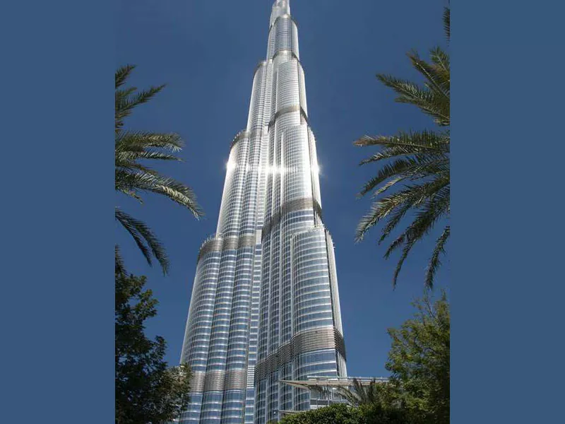 ● La Burj Khalifa en Dubajo, UAE, estas la plej alta konstruaĵo de la mondo, kun ŝtalo-konkreta hibrida kadro. Ĝi staras ĉe 163 etaĝoj kaj pli ol 828 metrojn alta.