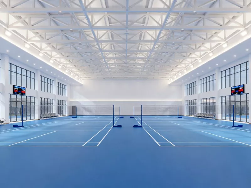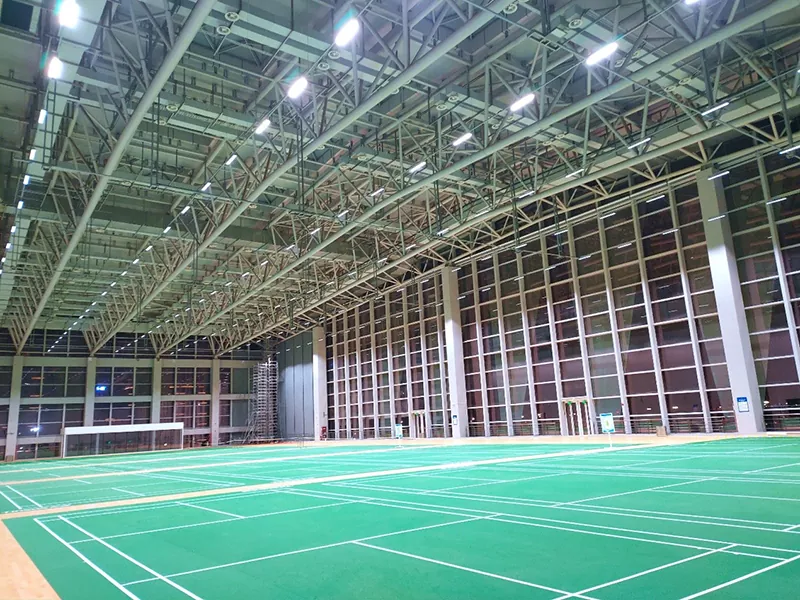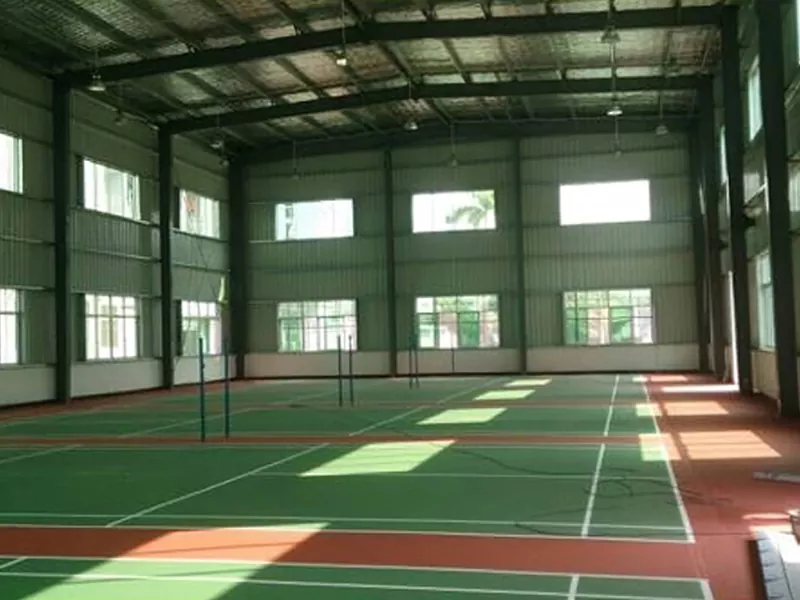 Sub la disvolviĝo de modernaj sportaj konstruaĵoj, ŝtalstruktura badmintonhalo iom post iom fariĝis la preferata struktura formo en la konstruado de badmintonaj ejoj. La ĉefa kadro kunmetita de ŝtalaj traboj kaj ŝtalaj kolonoj konsideras strukturan forton, estetikan efikon kaj ekonomian agadon, montrante la normojn de profesiaj sportejoj. Kiel fermita ejo, badmintonhalo devas havi bonan ventoligan sistemon kaj termoizolan efikon. Ŝtal-strukturita badmintonhalo povas uzi pli ekologiajn kaj termizolajn murmaterialojn, kaj sunpaneloj povas esti instalitaj sur la tegmento por generi elektron por la ventola sistemo.