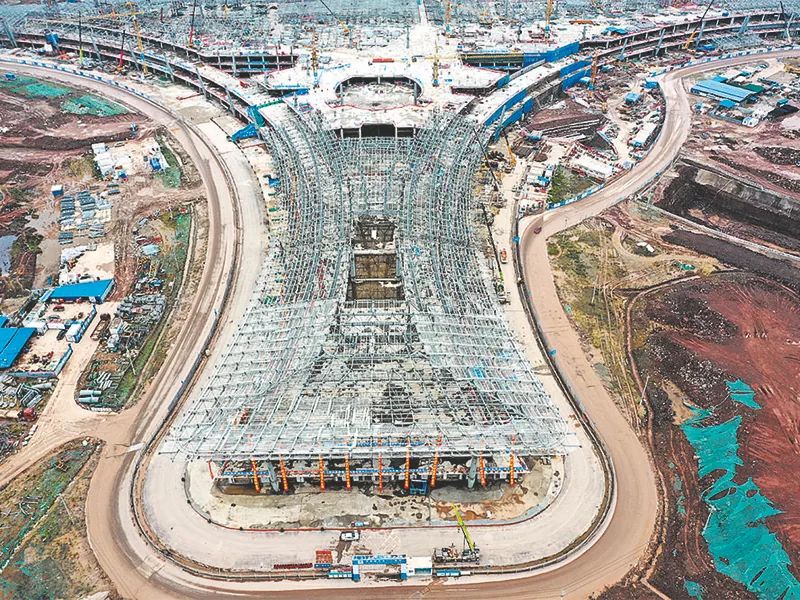 Ŝtala strukturo konstruanta flughavenan terminalon