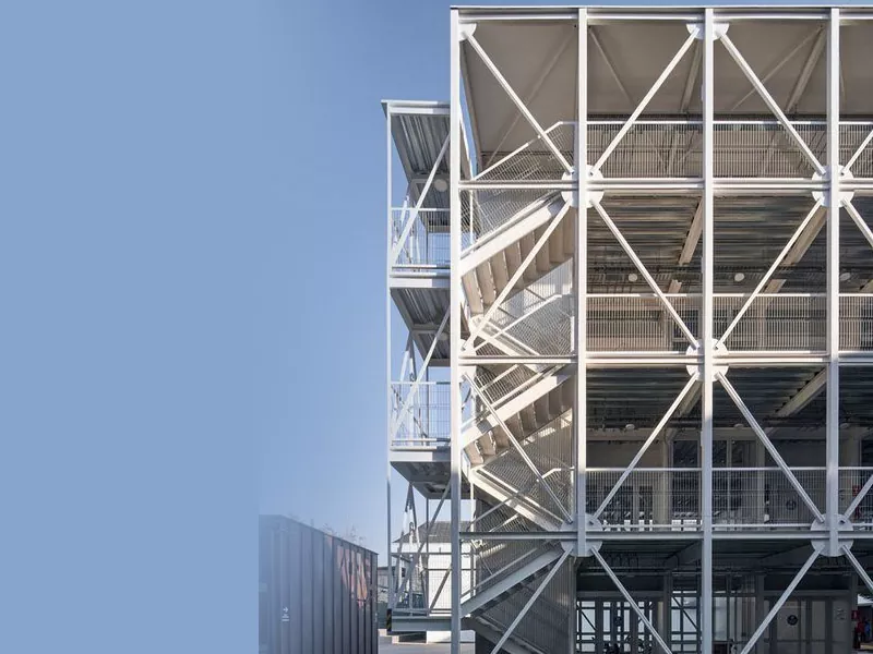 Materialoj: ŝtalaj traboj, kolumnoj kaj krampoj formas la ĉefan strukturon de la konstruaĵo. Ĉi tiuj materialoj ofte estas elektitaj surbaze de sia forto, fortikeco kaj kostefikeco.